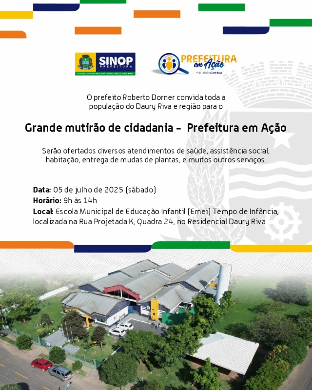 Neste sábado (5), os serviços da Prefeitura de Sinop estarão concentrados em um só lugar para atender à população do Residencial Daury
