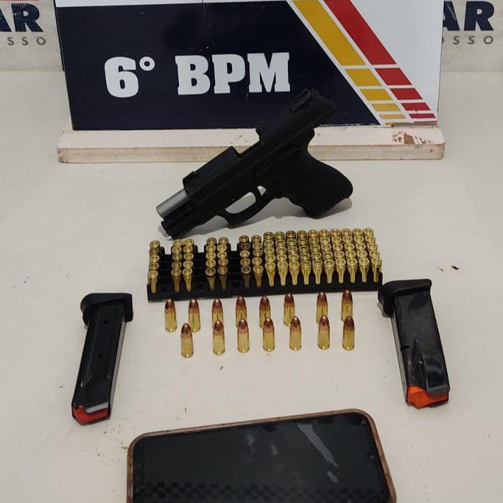 Suspeito estava com uma das armas utilizadas no crime Policiais militares do 6º Batalhão apreenderam um adolescente, de 16 anos,